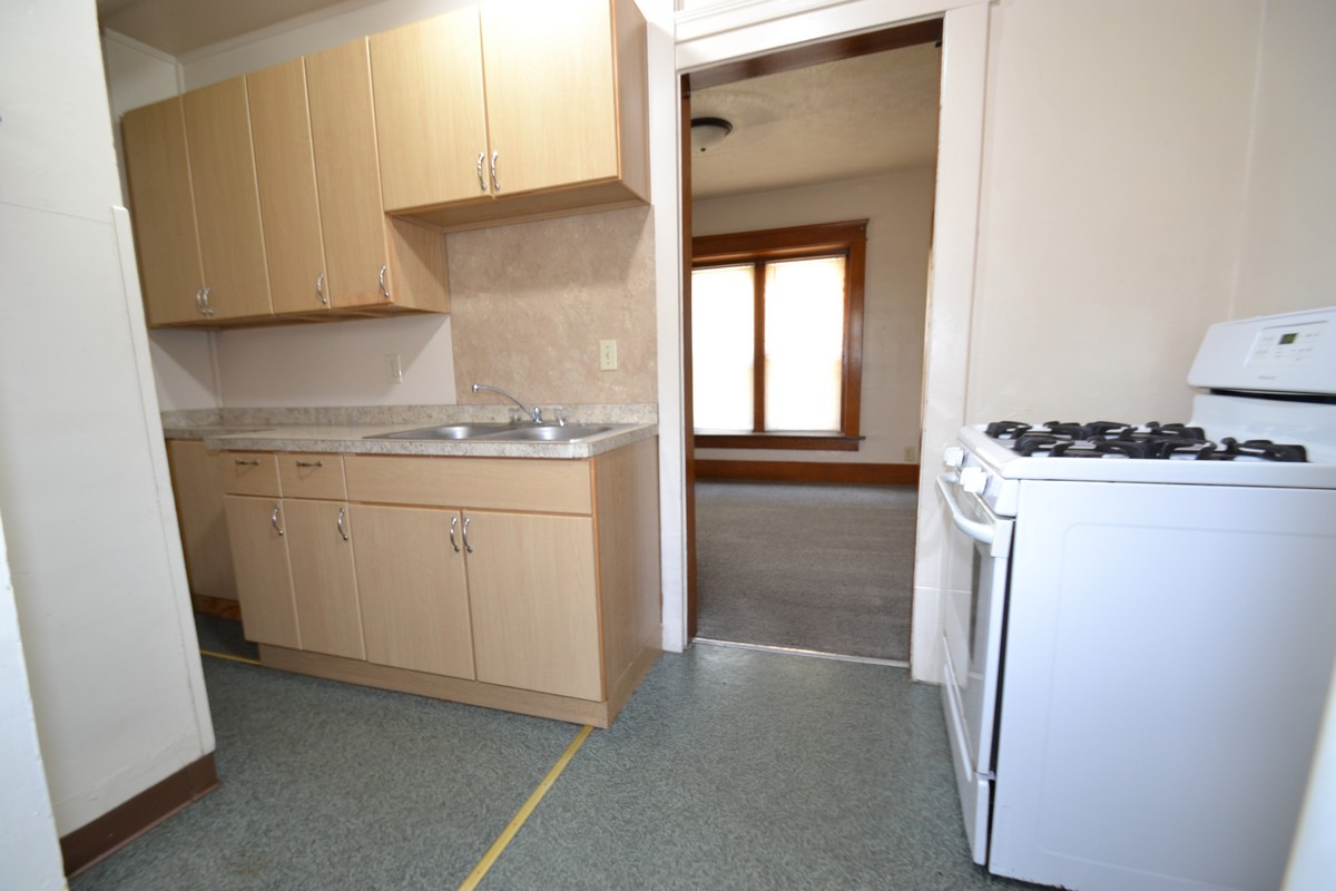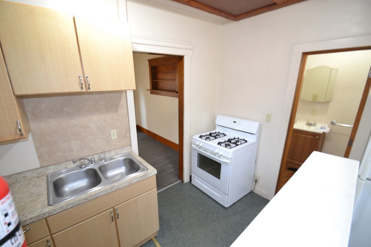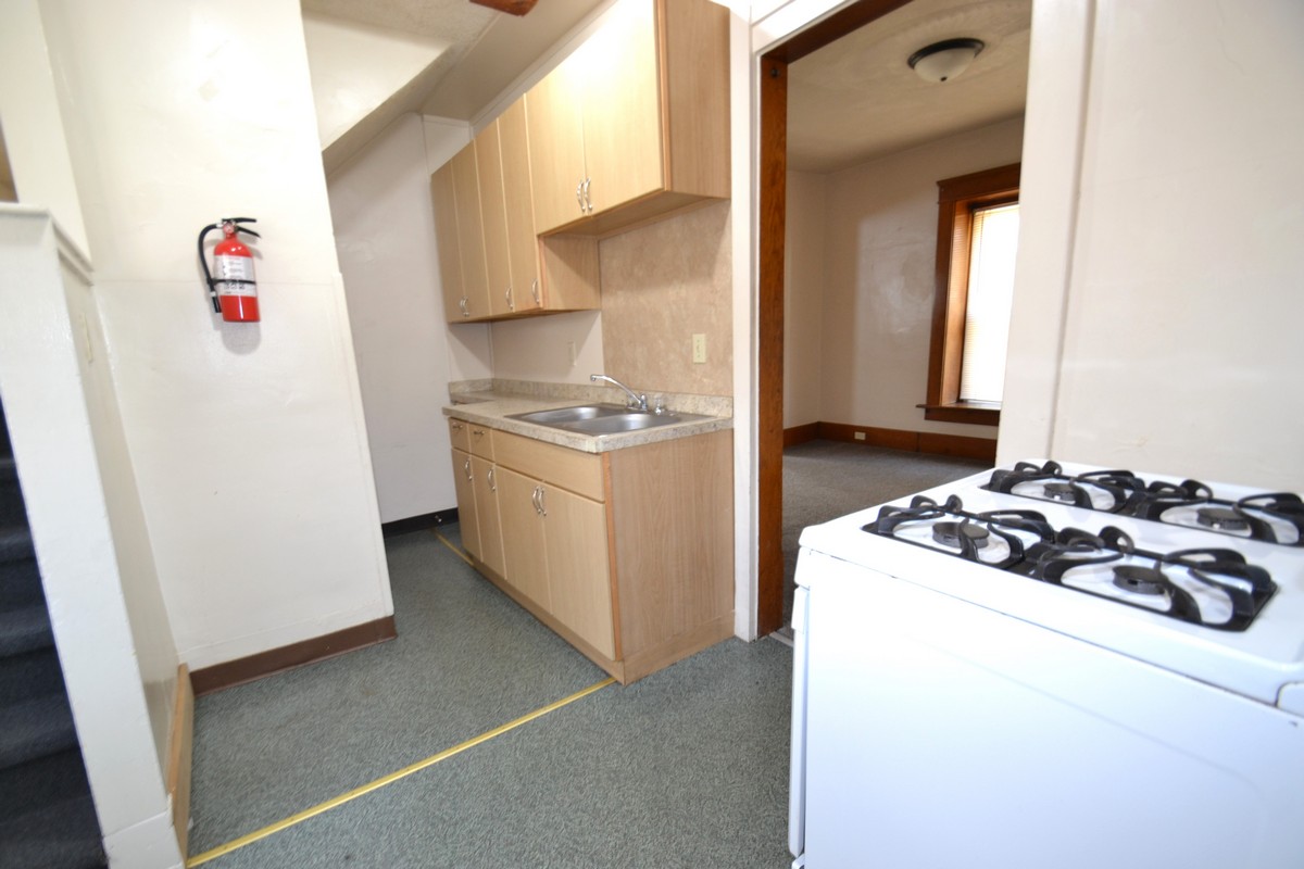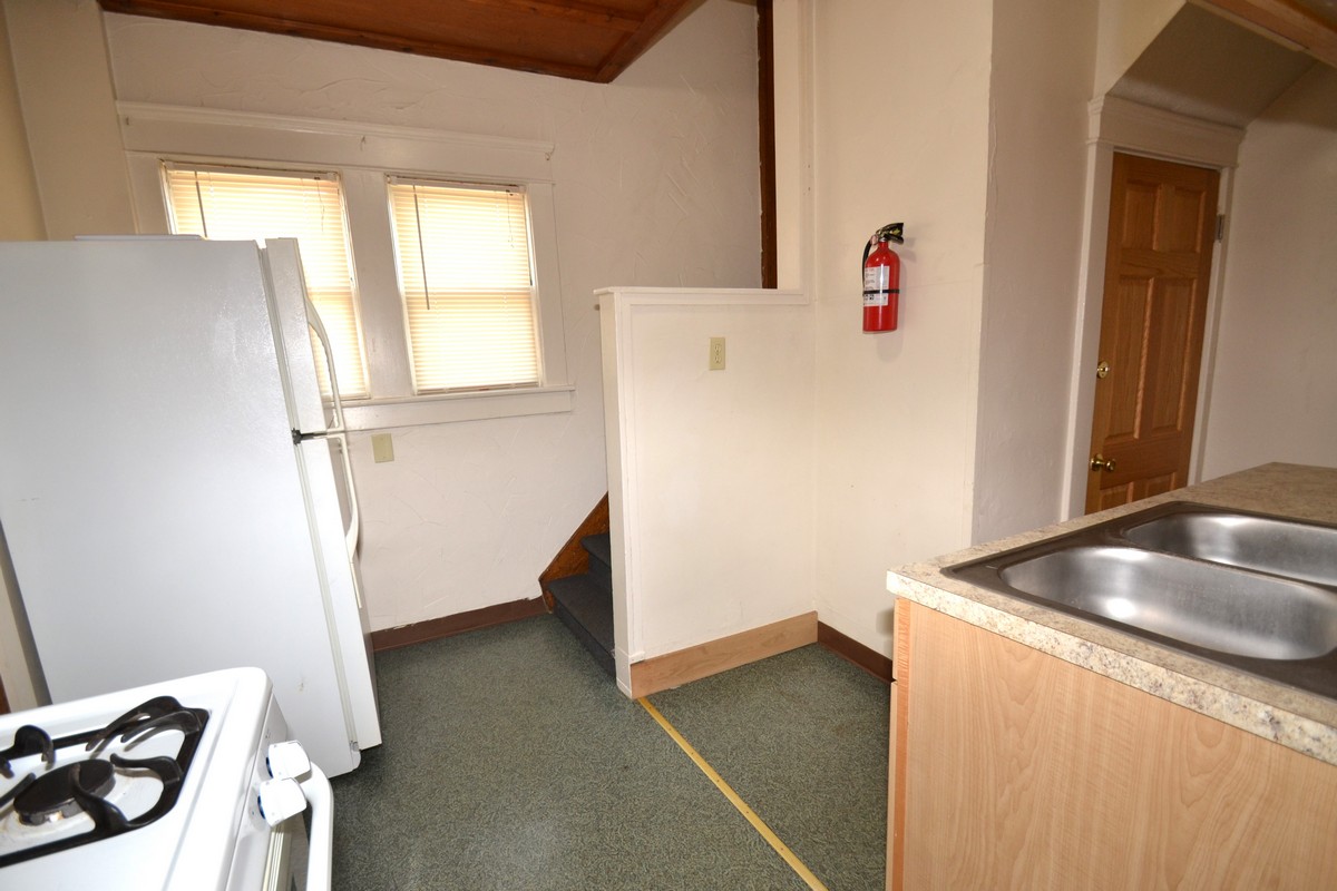 Spectacular house featuring a spacious living and dining room, dual stair case to second floor from living room and kitchen, remodeled kitchen with gas stove and fridge, newer carpet, 2 full bathrooms, washer and dryer provided, large bedrooms with individual deadbolt locks, front porch, utilities included, and security lighting for the off-street parking.