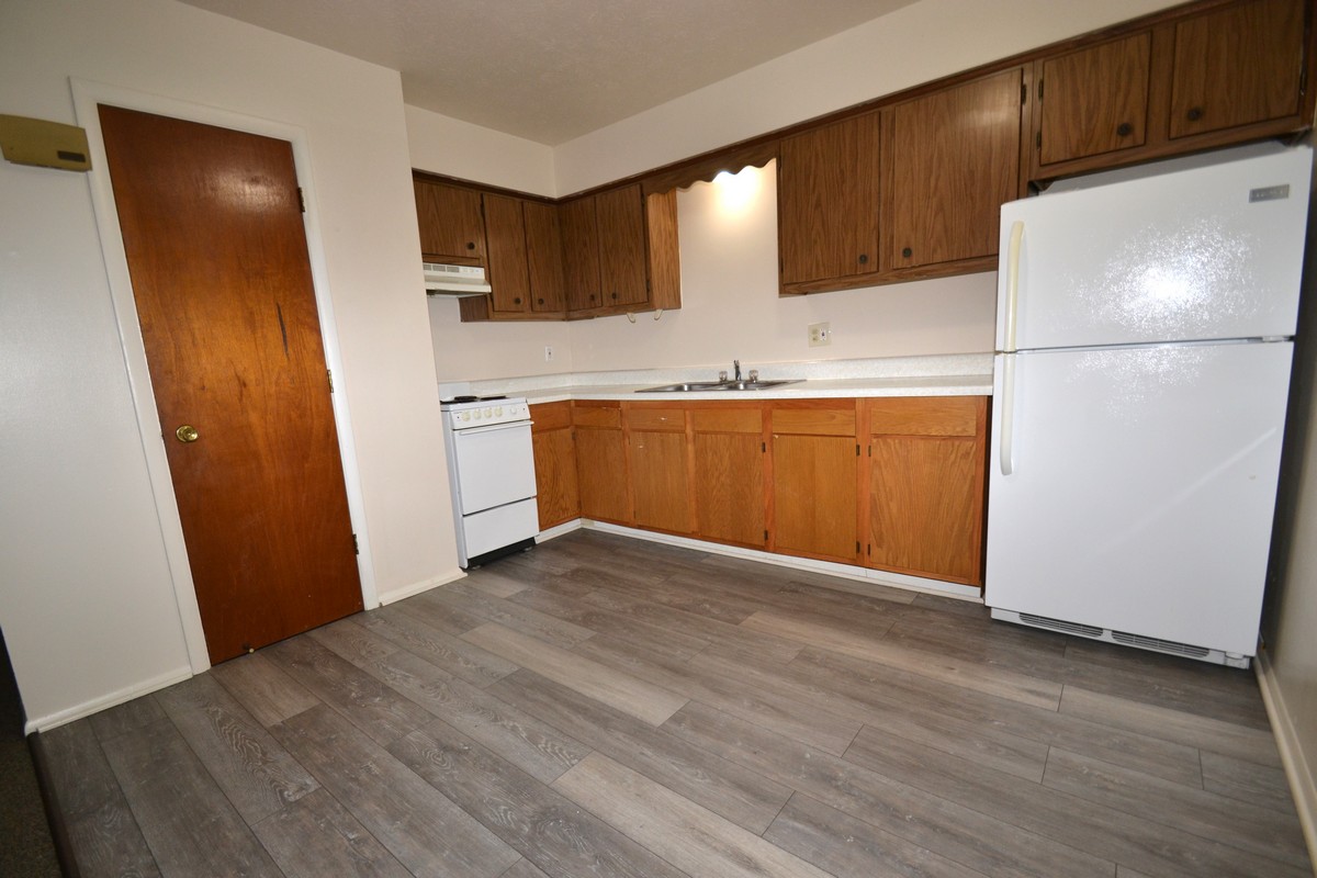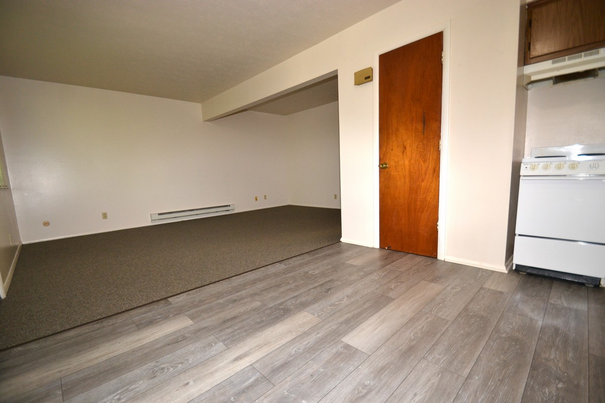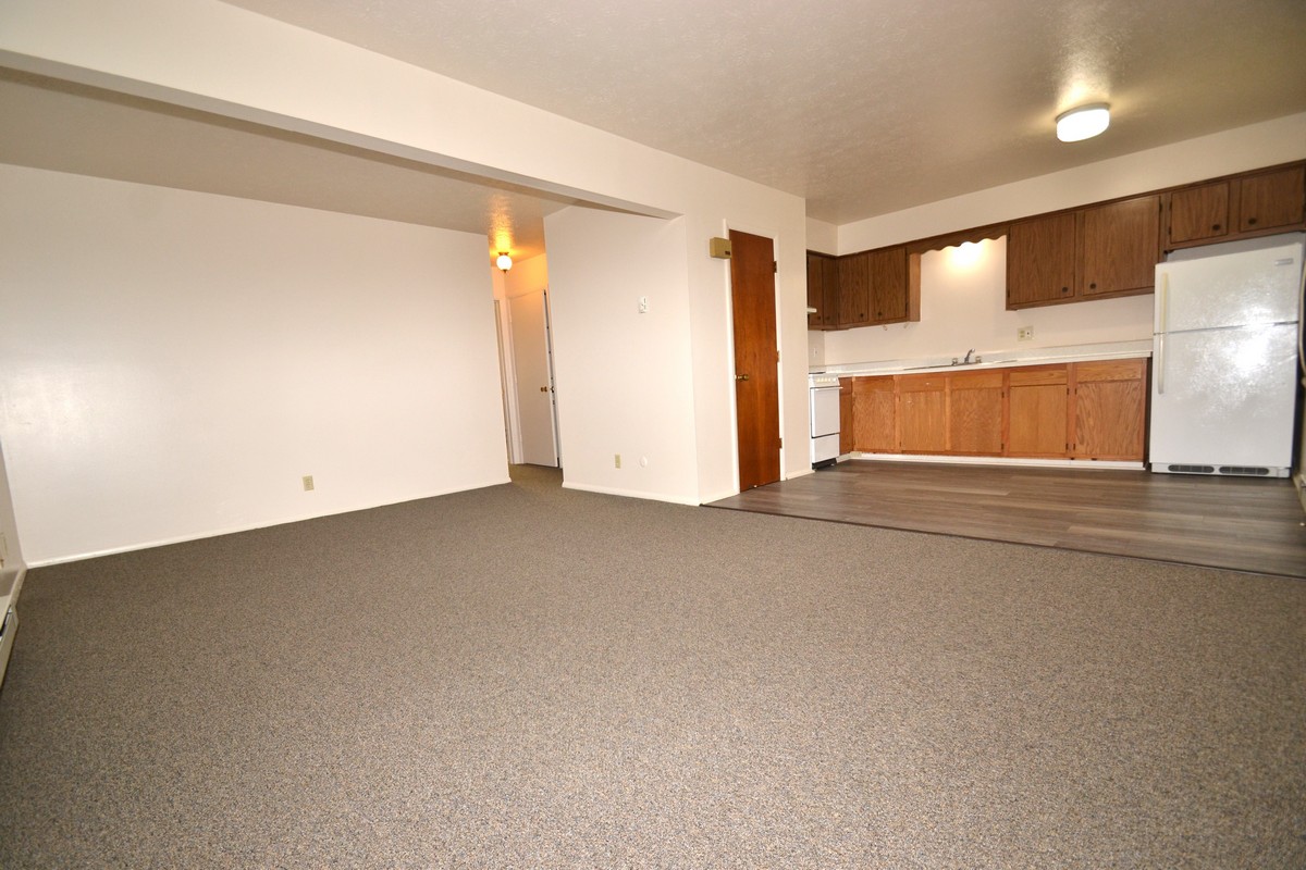 Open floor plan, large dine in kitchen and living room, remodeled full bath, large closets and pantry, spacious bedrooms, and patio or balcony.