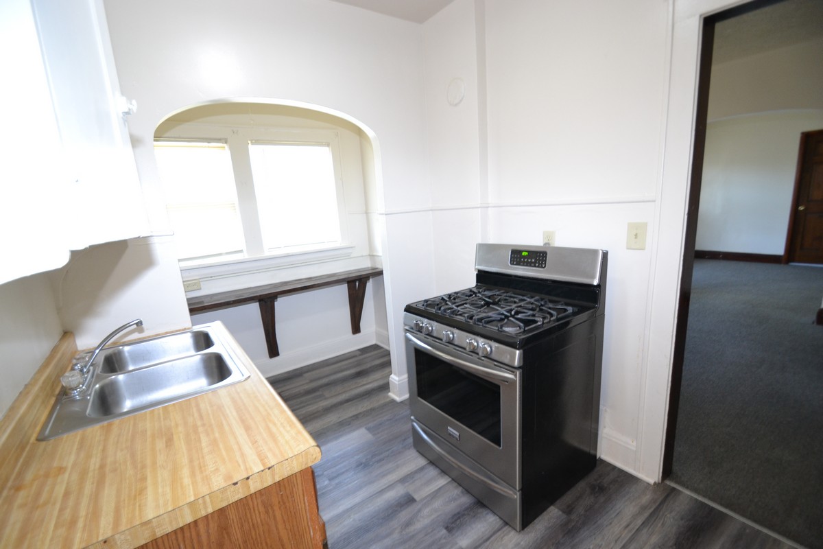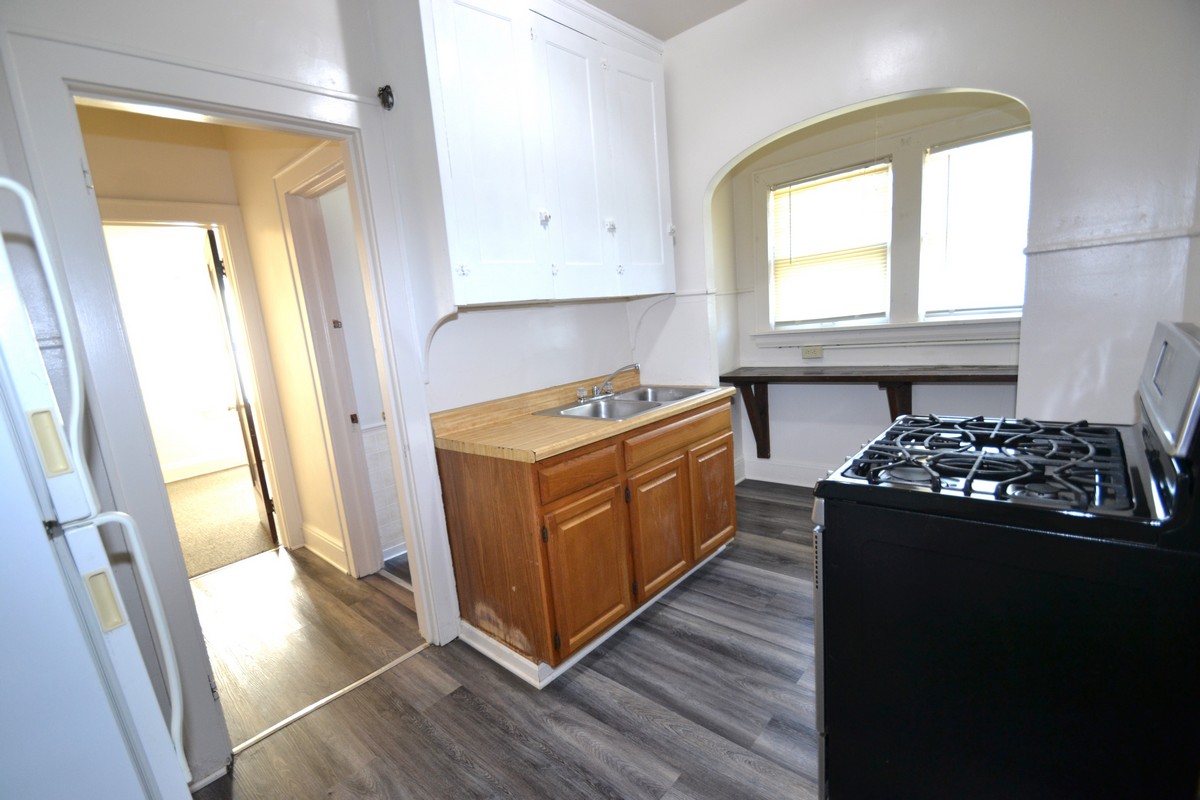 Spacious and modernized featuring a large living room and dining room, remodeled kitchen and bathroom, wood flooring in kitchen, off-street parking, laundry, and utilities included.